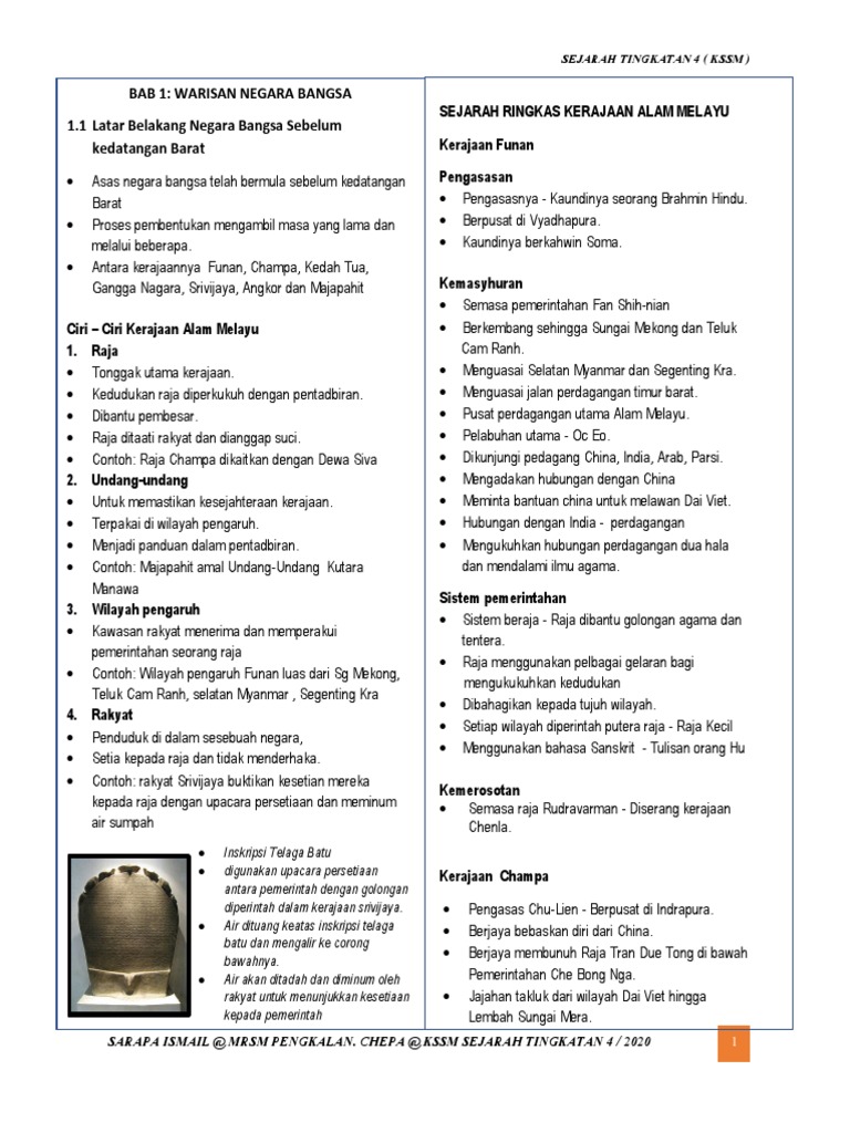 Nota Ringkas Padat Sejarah Tingkatan 5 Kssm Bab 1 10 Spm Bumi Gemilang